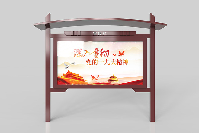 宣傳欄是一種VI應用,是組織或企業(yè)單位等進行自我宣傳的有效手段,常被應用于街道,工廠等公共場所;一般采用不銹鋼為框架,鋼化玻璃或者耐力板為面板,鋁合金為頂棚,面板可以打開更換宣傳畫面?,F如今,宣傳欄廣泛應用于學校、小區(qū)、會議館、展廳等各個場地。